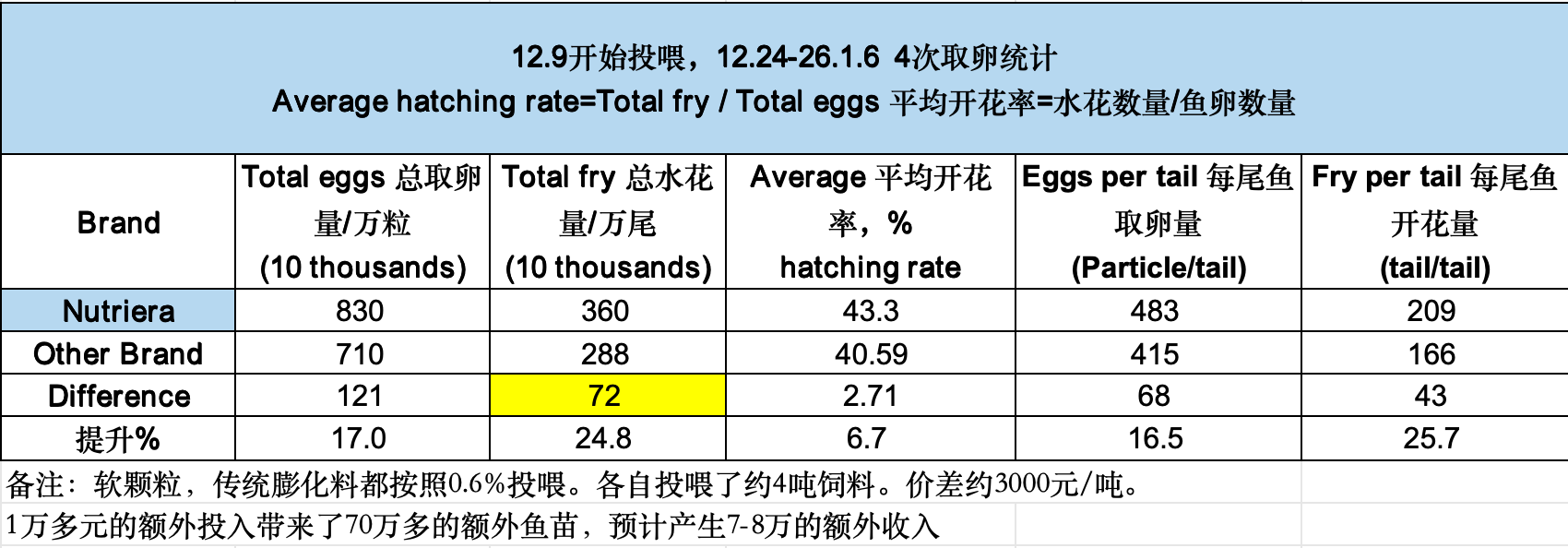 *产卵量大幅度提升,一阶段(投喂一个月)提升17%左右。