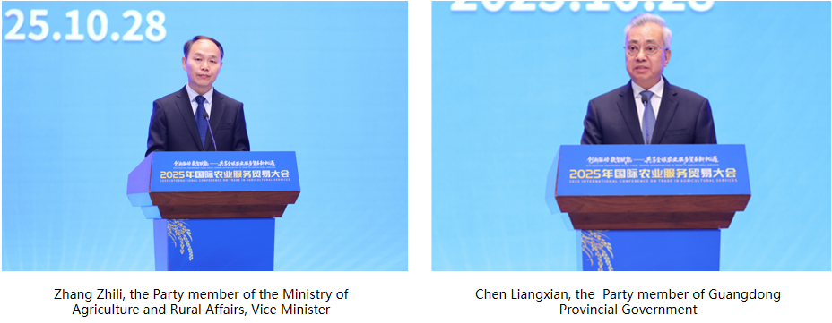On October 28th, the 2025 International Agricultural Service Trade Conference sponsored by China Ministry of Agriculture and Rural Affairs of China and the People's Government of Guangdong Province, organized by Foreign Economic Cooperation Center of the Ministry of Agriculture and Rural Affairs, Guangdong Provincial Department of Agriculture and Rural Affairs, was grandly held in Nansha, Guangzhou. The Conference with the theme of Innovation-Driven and Digital-Empowered: Sharing New Opportunities in Global Agricultural Service Trade, attracted Minister of Agriculture,Ambassador to China,Representatives of international organizations, specialists in agricultural trade services, and corporate executives from more than 30 countries and regions around the world to discuss the future trend and opportunities cooperation in global agricultural service trade.